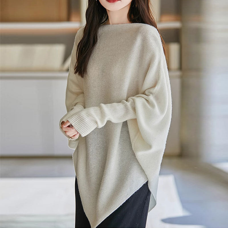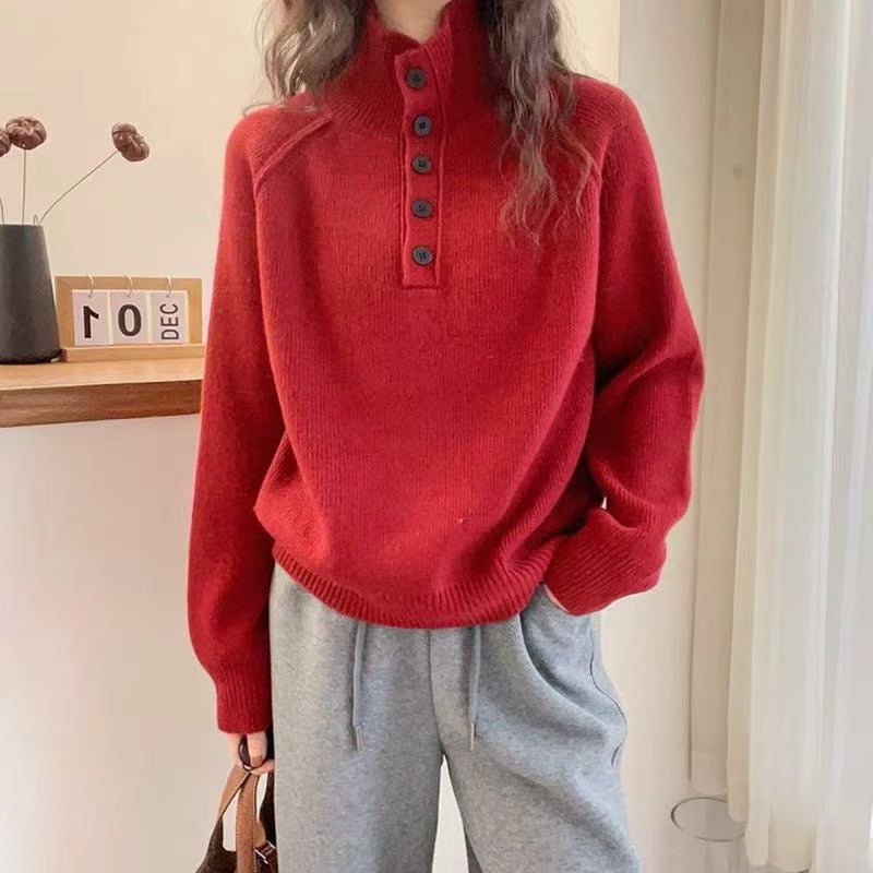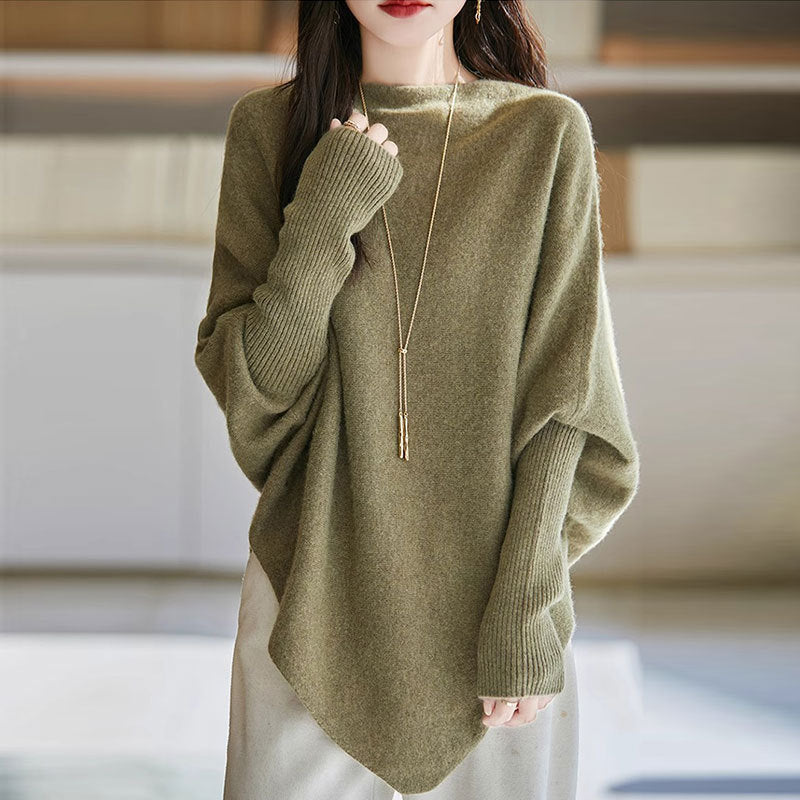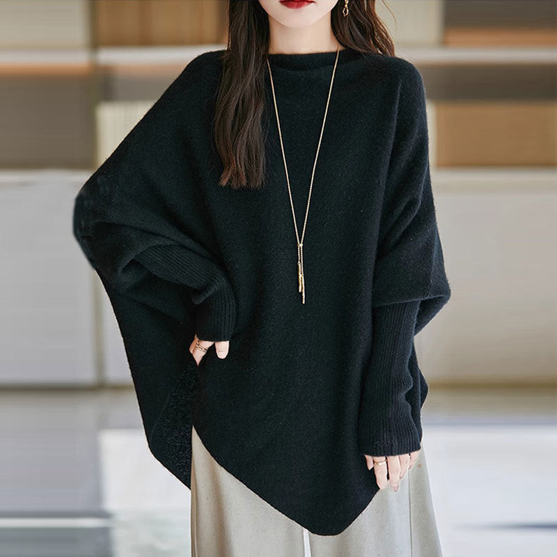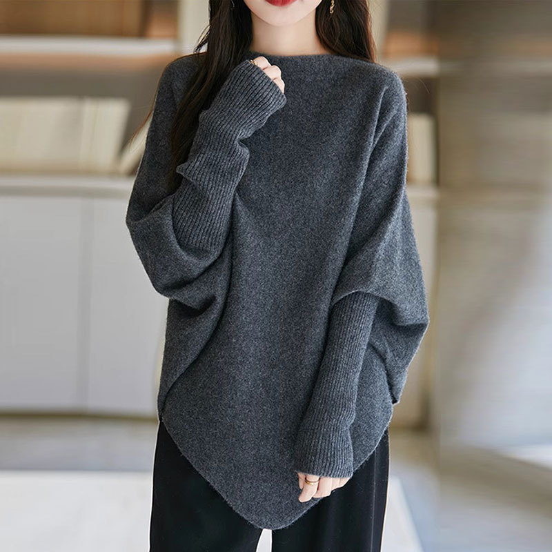 2025 Korean Version Of Loose Lazy Wind Soft Knitted Blouse Irregular High-Necked Solid Color Sweater Autumn HZ0108
