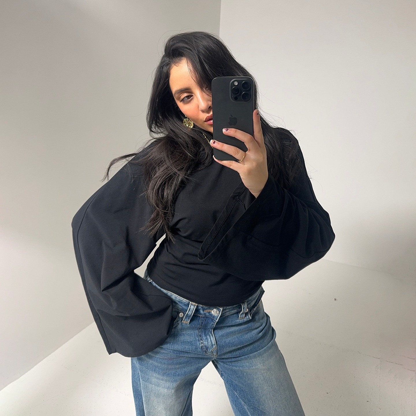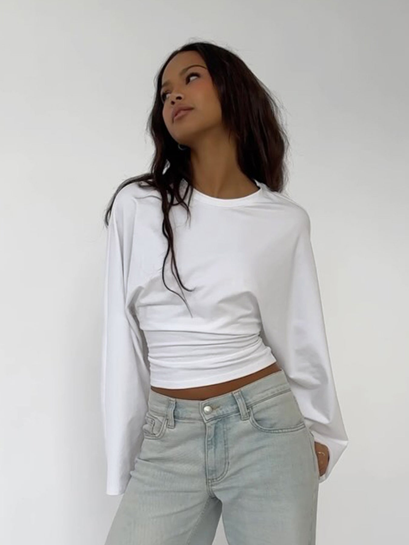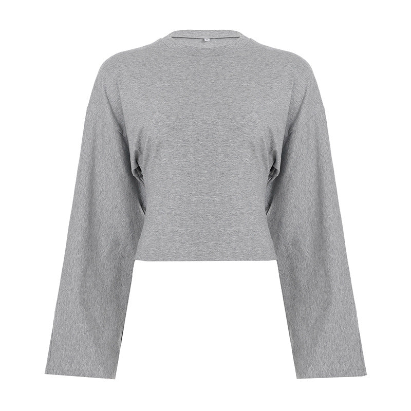 Personalized Street Casual Round Collar Collar Loose Blouse Lazy Windy Fashion Umbilical Long-Sleeved T-Shirt HZ0108