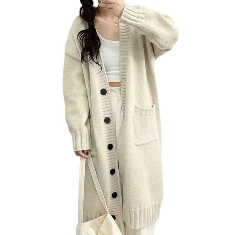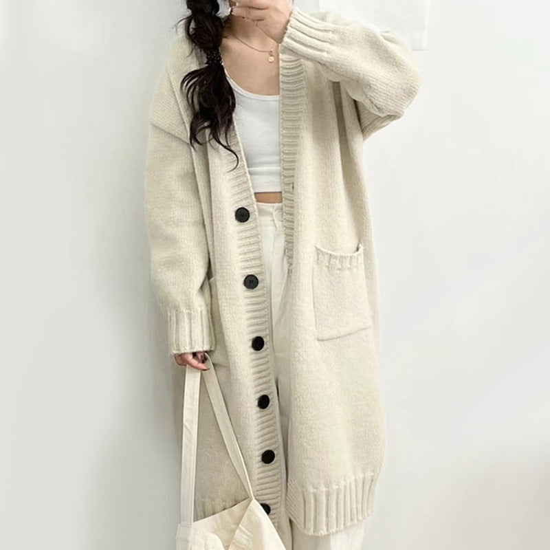 Autumn And Winter New Lazy Pocket Design Wool Knitted Cardigan Women Long Sweater Coat Women HZ0108