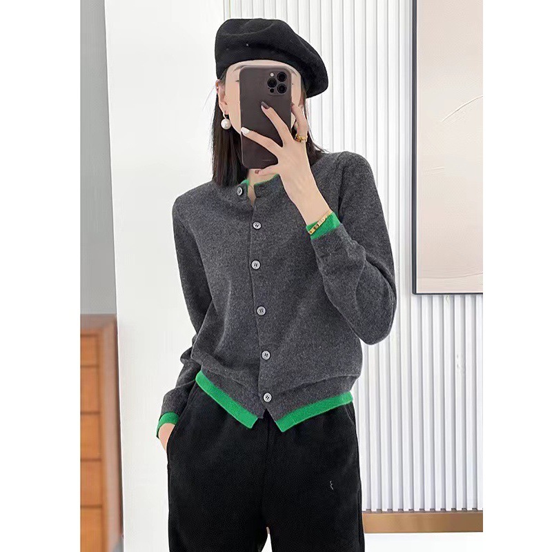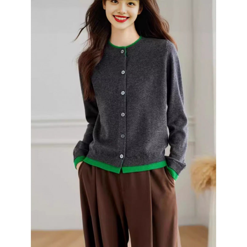 Design Sense Of The Color Collar Knitted Cardigan 2025 Spring And Autumn French Style Color Show Thin Women's Clothing Two HZ0108