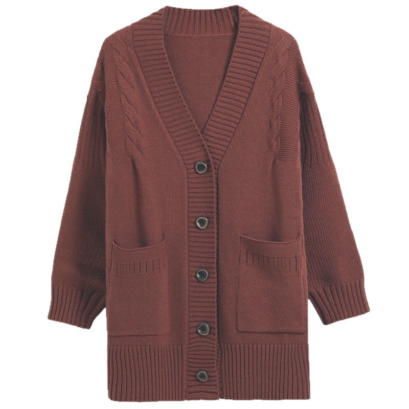 Mid-Long Korean Version Of Knitted Cardigan 2025 Women's Clothing Spring And Autumn Loose Design V-Neck Sweater Women's Autumn And Winter Coat HZ0108