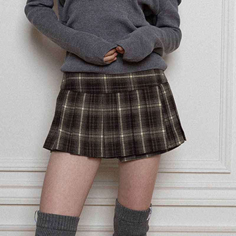 Vintage English Style With Hottie Fashion Lattice Half Dress Girl Girl College Sense Trousers Hundred Folds Skirt HZ0107