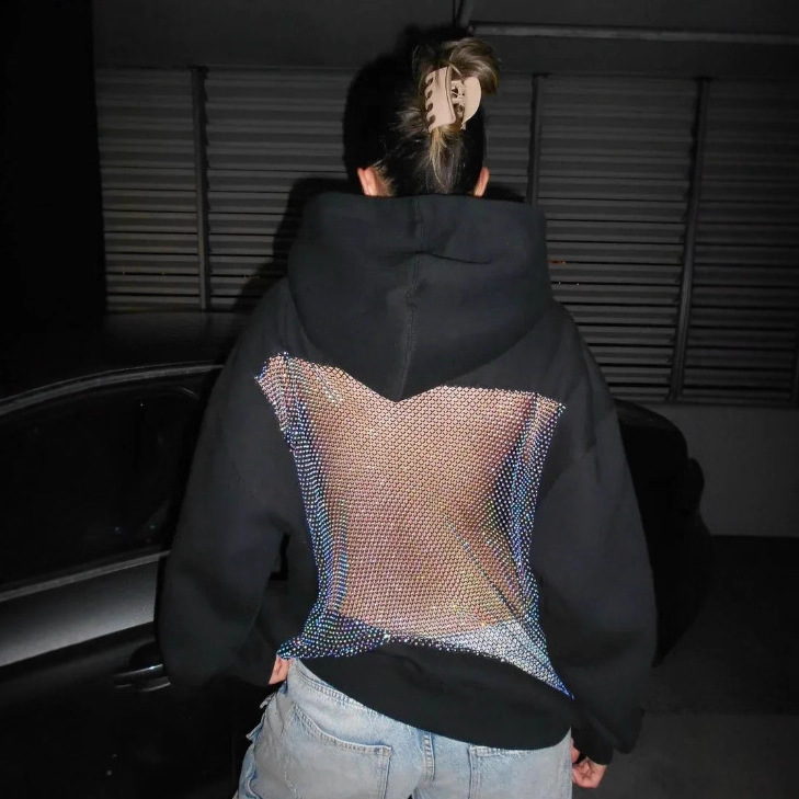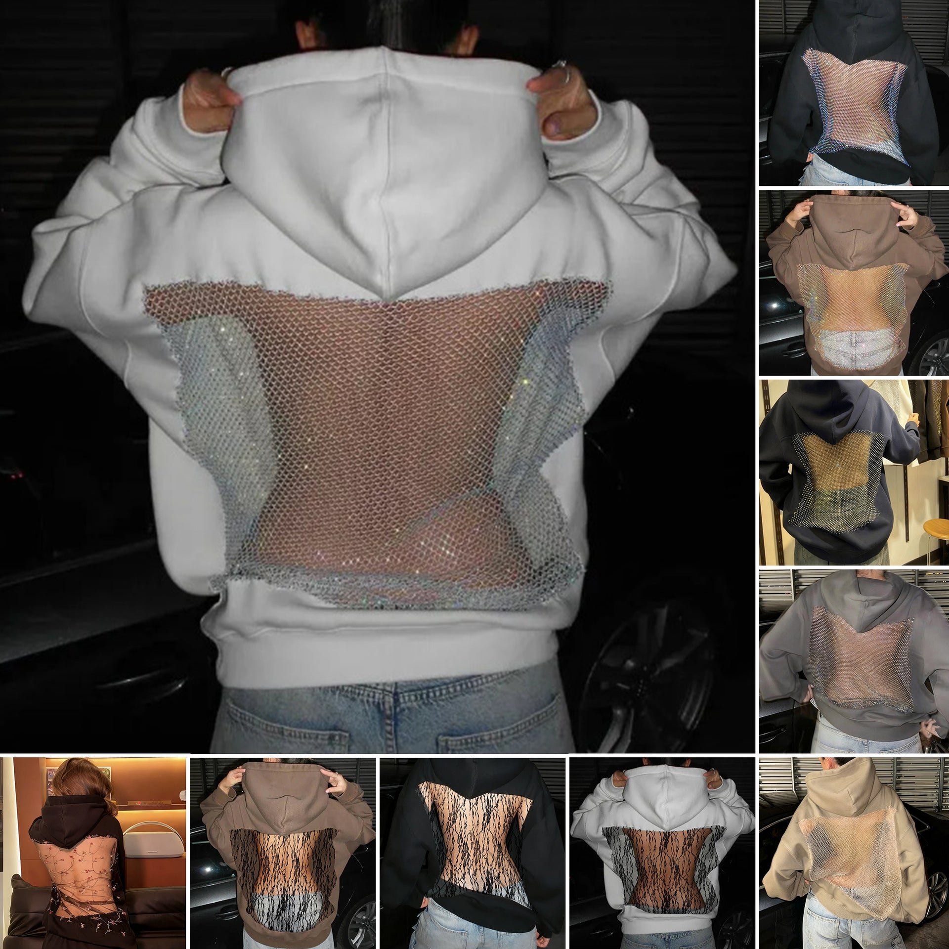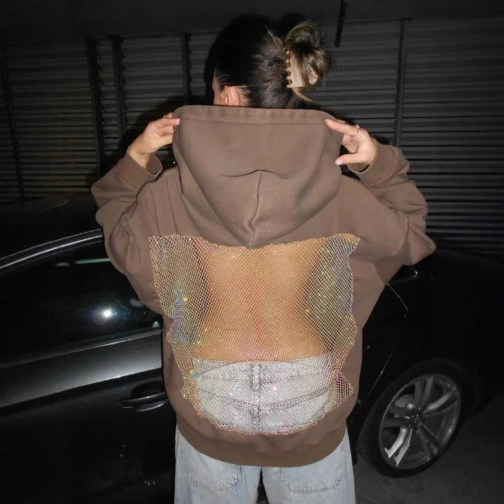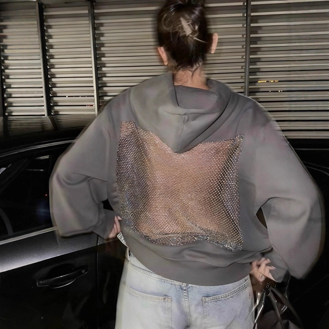 2025 Autumn And Winter New Women's Fashion Pure Color Bare Back Hollow Net Hoodie Hoodie HZ0108