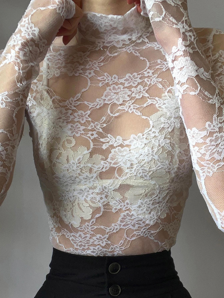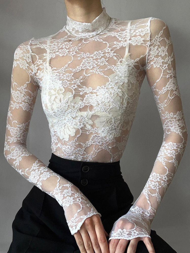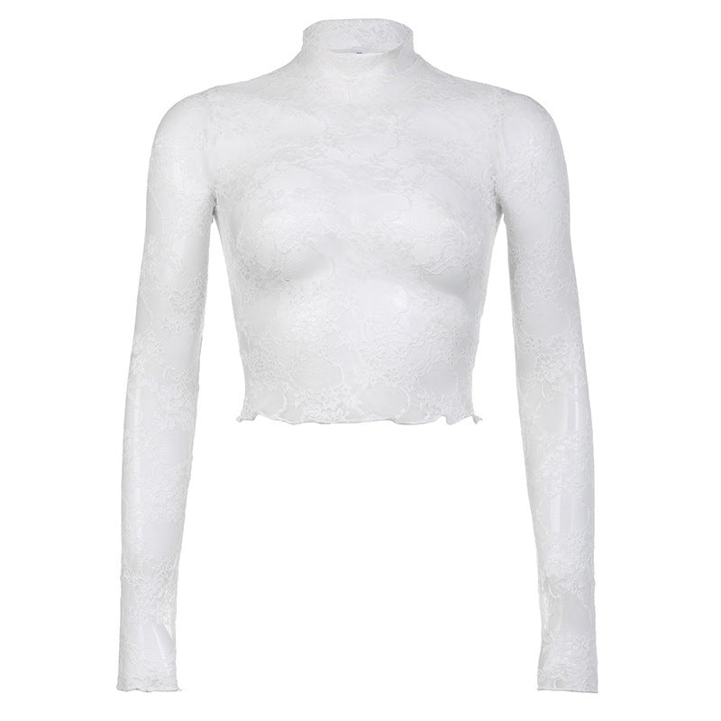 Lace T-Shirt With A Sexy High-Collar T-Shirt Girl Wearing A White Sunscreen Hoodie Short Top HZ0108