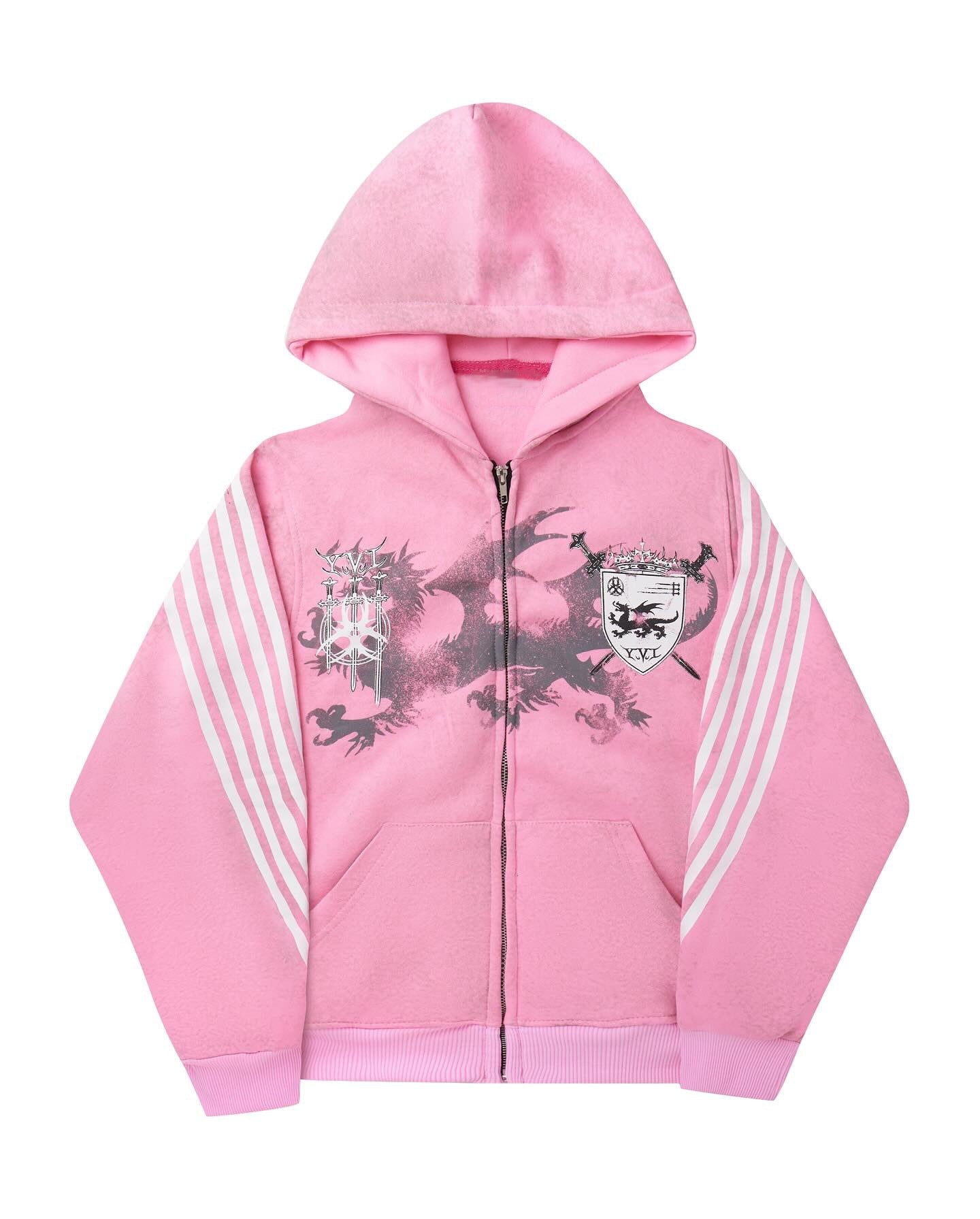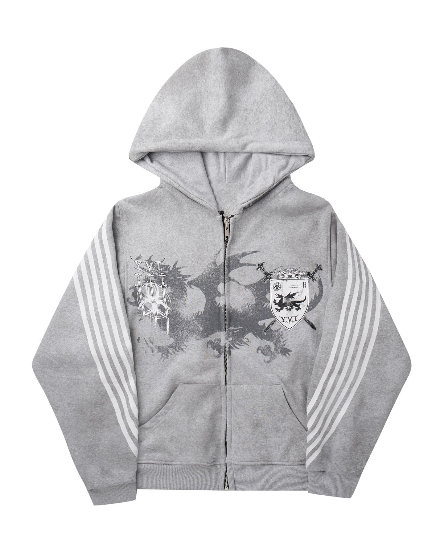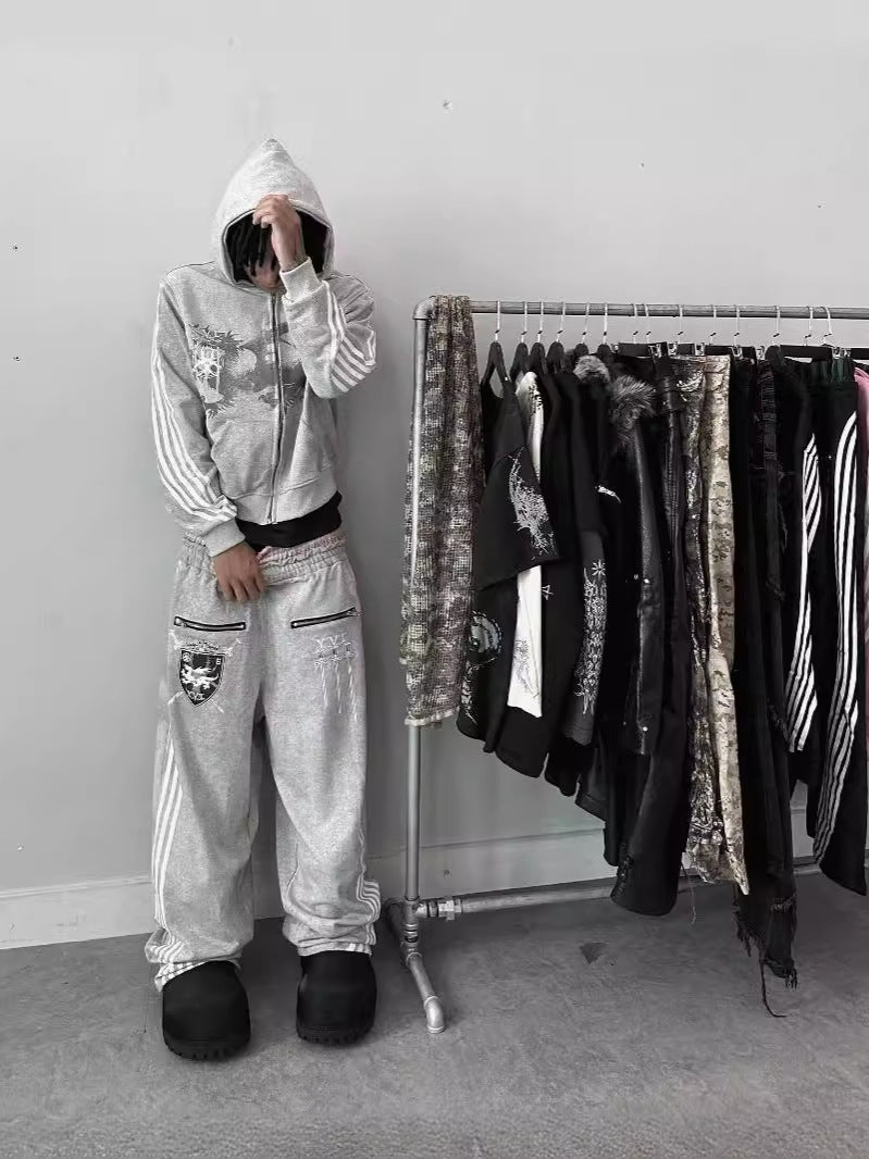 Vintage Design Sense Three Bar Print Hoodie Trendy Street Zipper Loose Repair Men's And Women's Clothing HZ0108