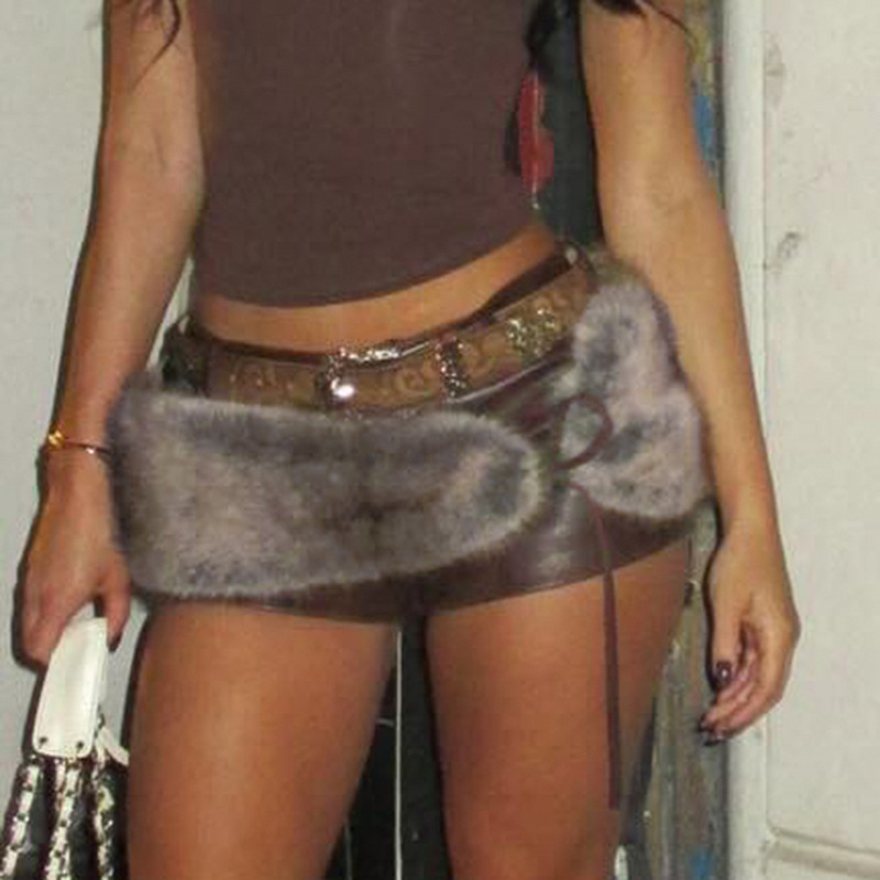 Spice Girls Retro Street Fashion With Personalized Leather Pants Autumn And Winter New Tying With Irregular Fur Belt Two Sets HZ0107