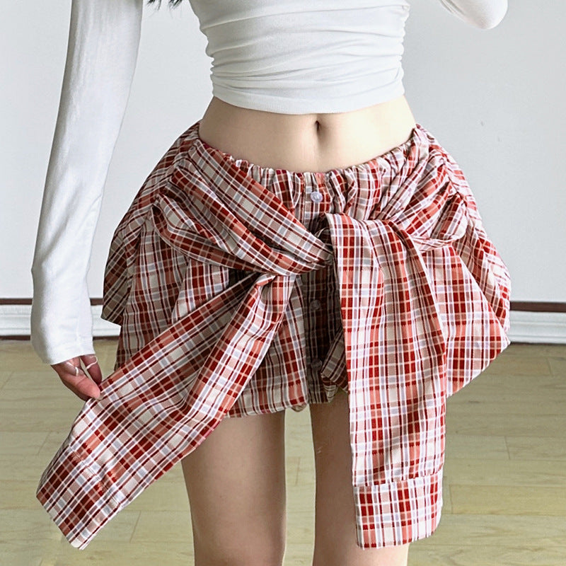 Sweet Spicy Wind Strap Elements Lattice Flower Breath Skirt Girl Design Tight Low-Rise Blind Age Bumpy Color Skirt HZ0107