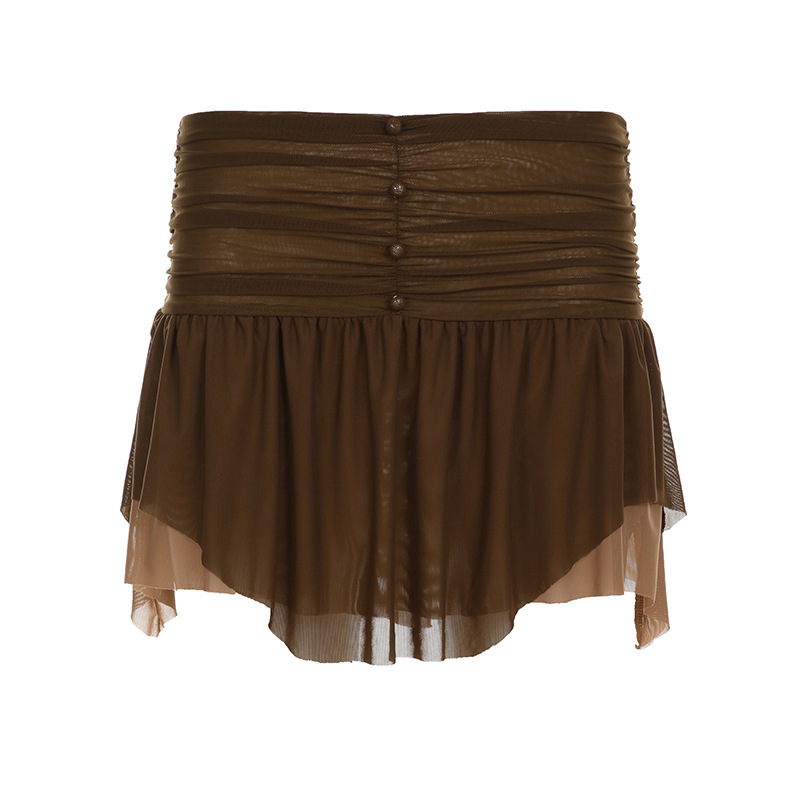 Vintage Pure-Want Wind Hanging Neck With Mesh Double Slings Girl Low-Waist Folds Irregular Skirt Two-Piece Cover HZ0107