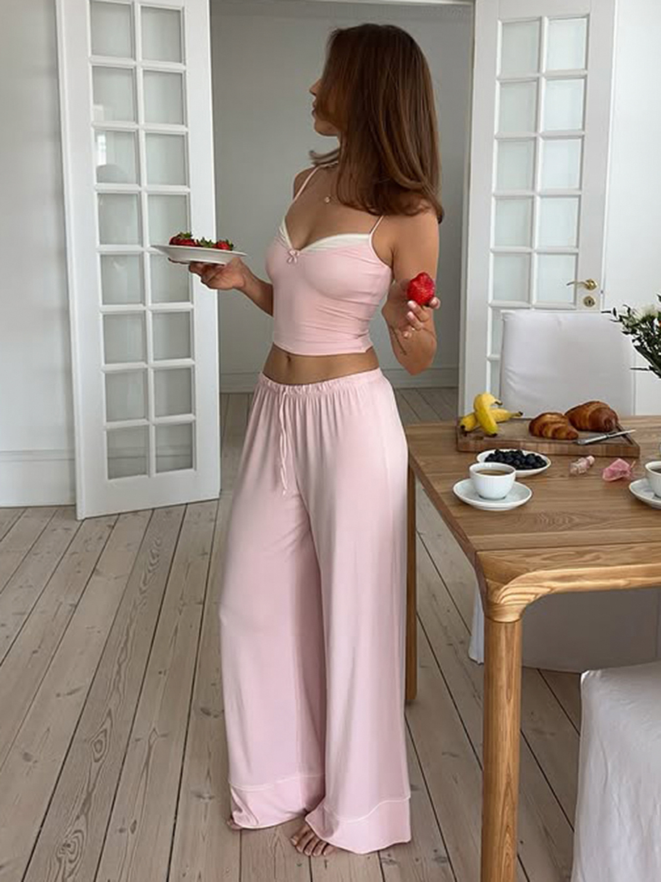 Home Fake Two Loose Trousers Set Sweet Pure Lust Lace Sling Vest + Slimming Casual Pants HZ0108