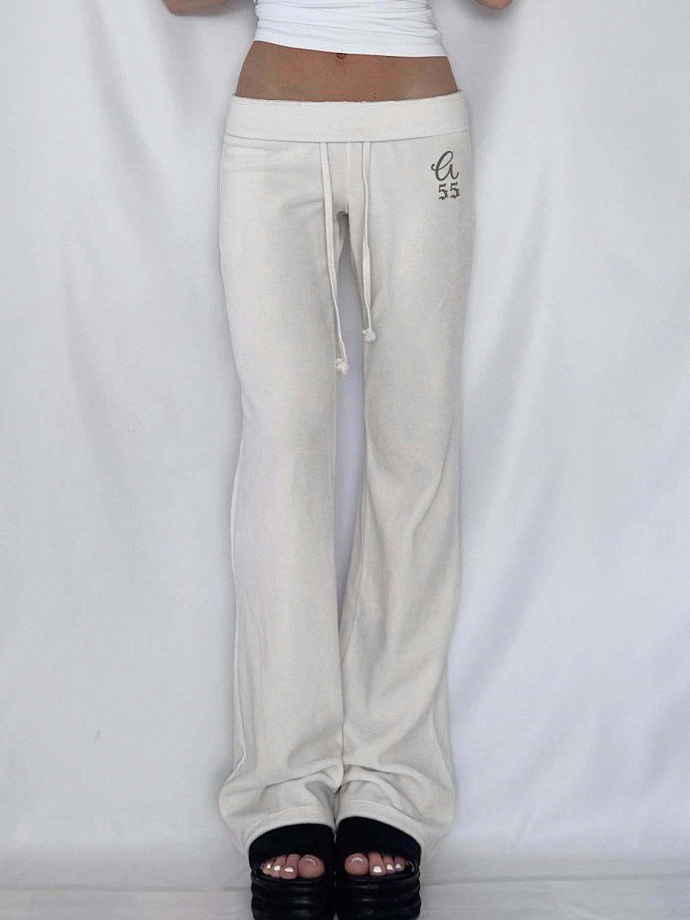 Lazy And Comfortable Style Repair Slim Thin Drawstring Solid Basic Wear Trousers New Letter-Printing Casual Pants HZ0108