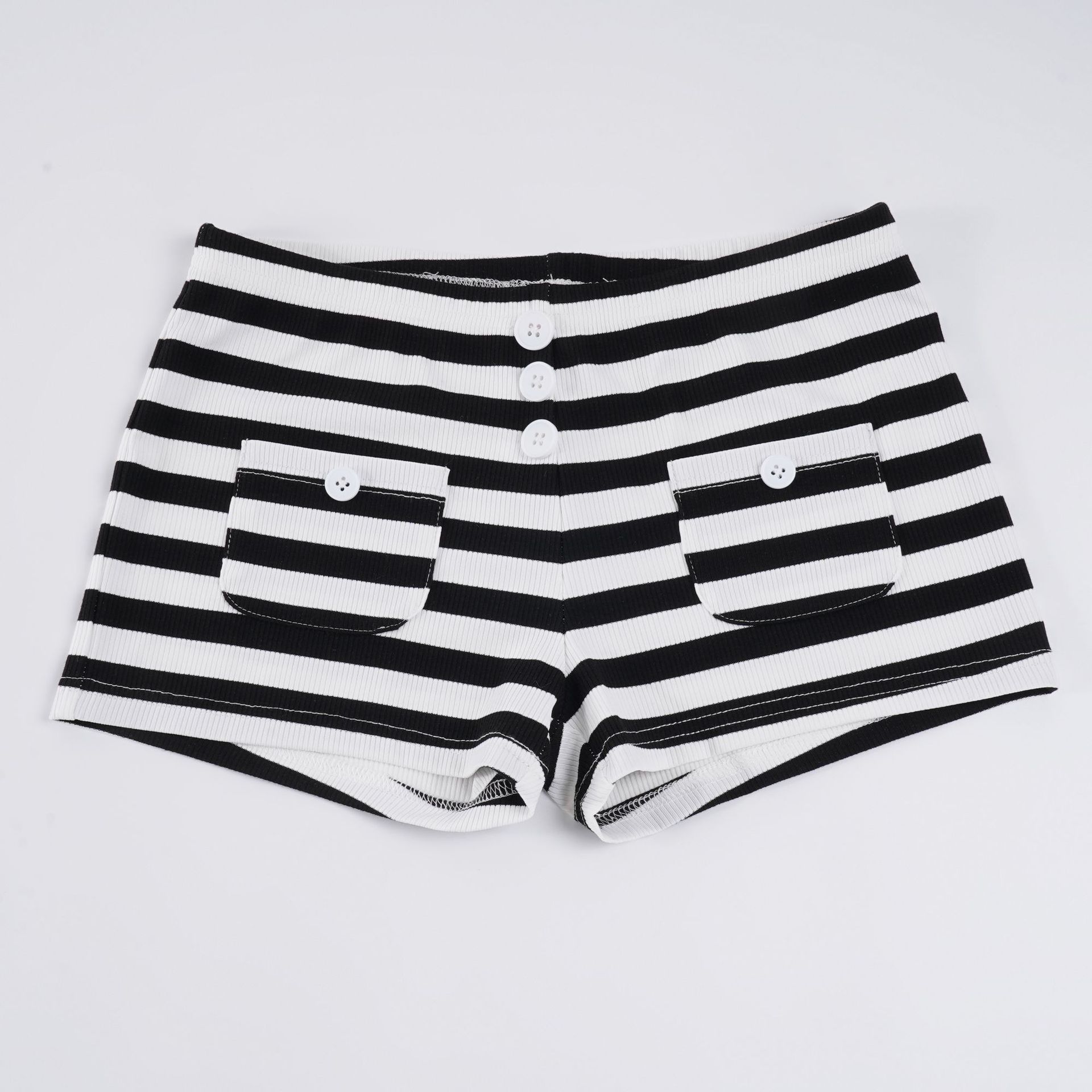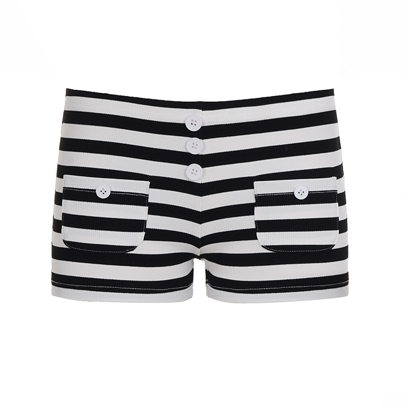 Lazy Style Retro Low-Rise Striped Home Shorts Hottie Fashion Basic Buckle Thin Simple Casual Pants HZ0108