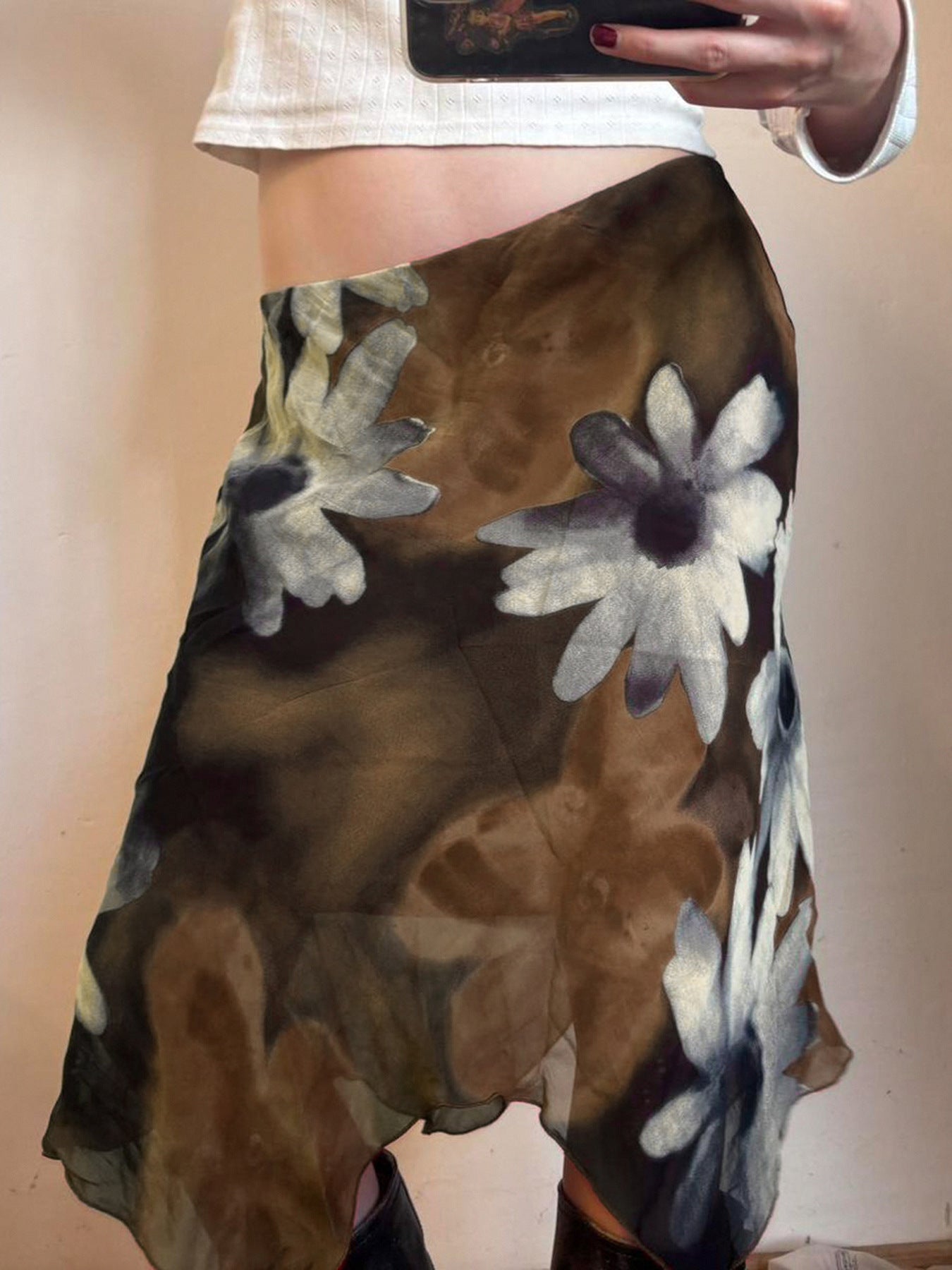 Sweet Fresh Mesh Yarn Print Half Skirt New Slimming Waist Babes Hip Skirt HZ0108