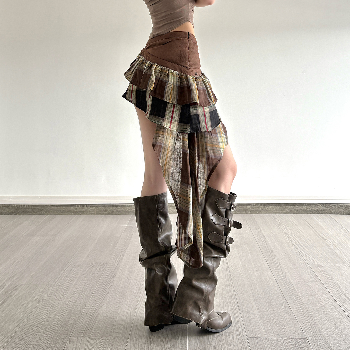 Vintage Style Ins Street Babes Hips Skin Wasteland Style Splicing Irregular Hem Half-Dress Skirt Girl HZ0107