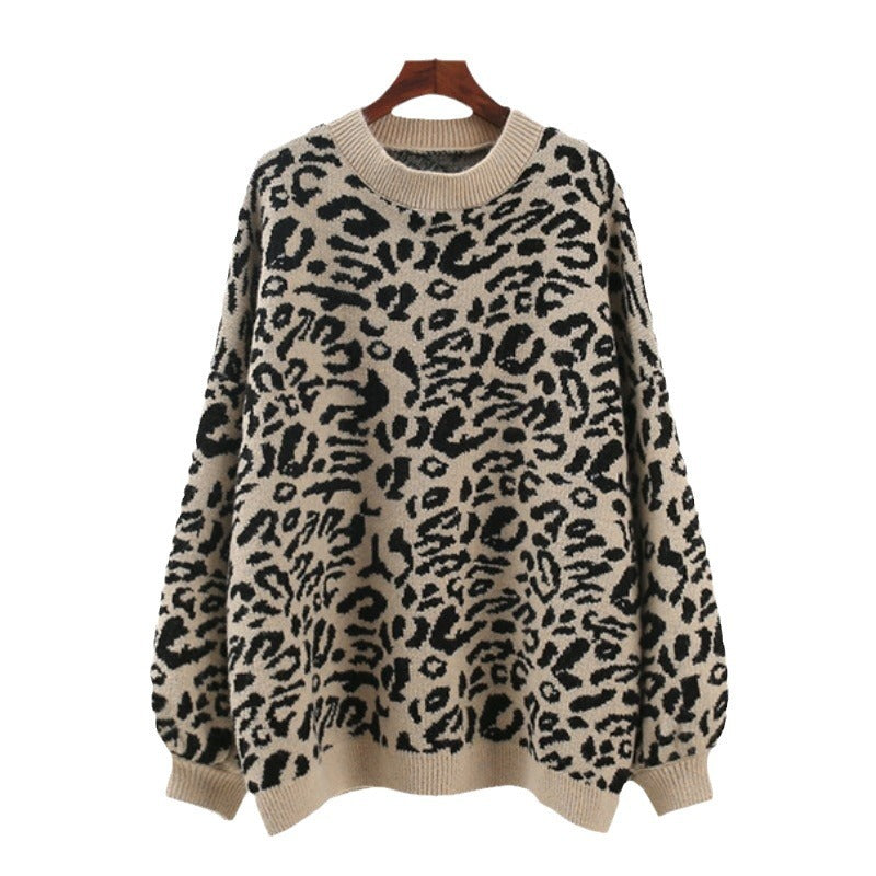 Leopard-Print Round Collar Collar Sweater Women's New Retro Loose Lazy Wind Thick Knitwear Women's Clothing In Autumn And Winter 2025 HZ0108