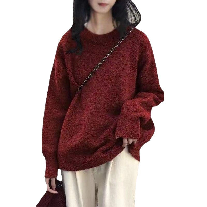 Solid Color Soft-Creating Sweater Women's Autumn And Winter 2025 New Lazy Wind Foundation Round Collar Knitted Shirt Top HZ0108