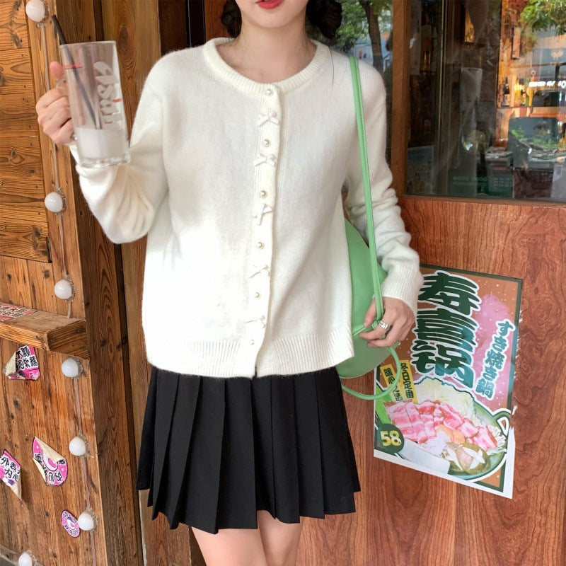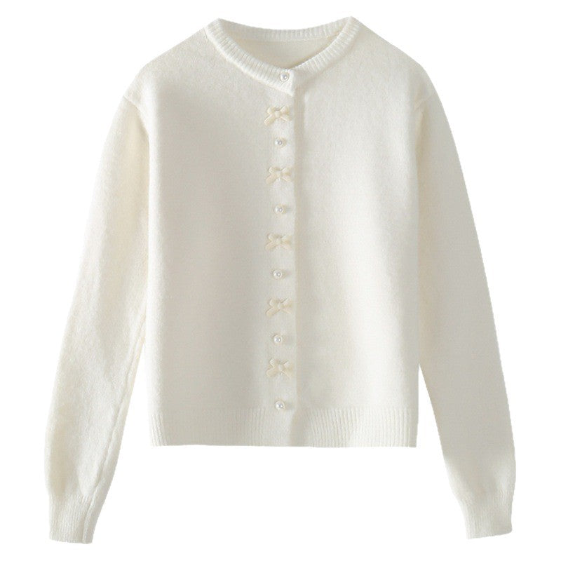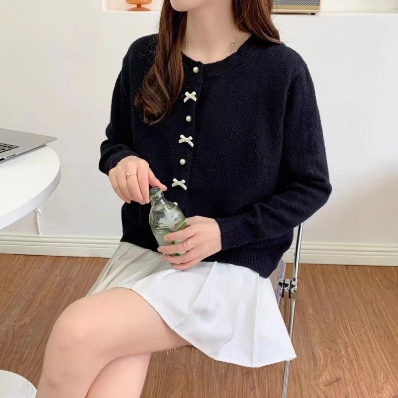 Spring And Autumn Bow Pearl Button Sweater Women's High Sense Korean Casual Gentle Wind Knitted Shirt Coat HZ0108