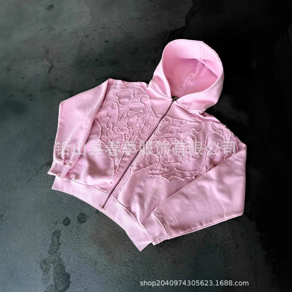 2025 Fashion Embroidery New Hooded Open-Necked Zip-Down Jacket Loose Men's And Women's Same Tunic HZ0108