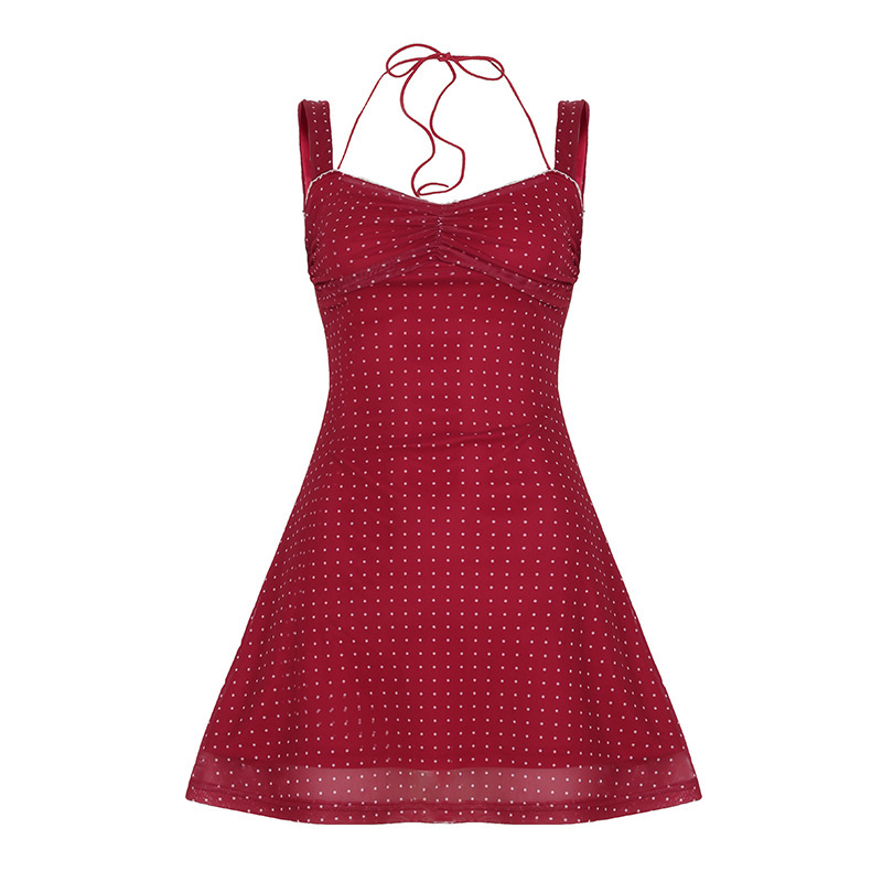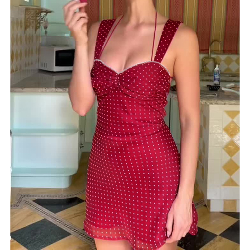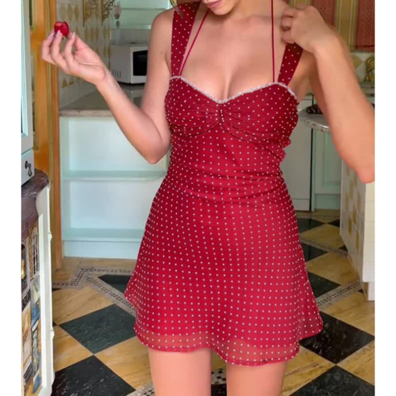 2025 Spring And Summer New Women's Style French Retro Holiday Style Sexy Bare Back Repair Wave Printing Dress HZ0107