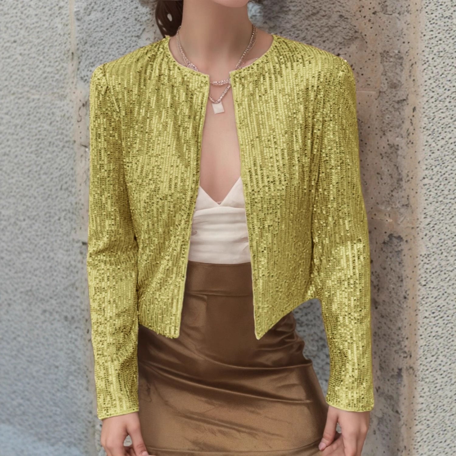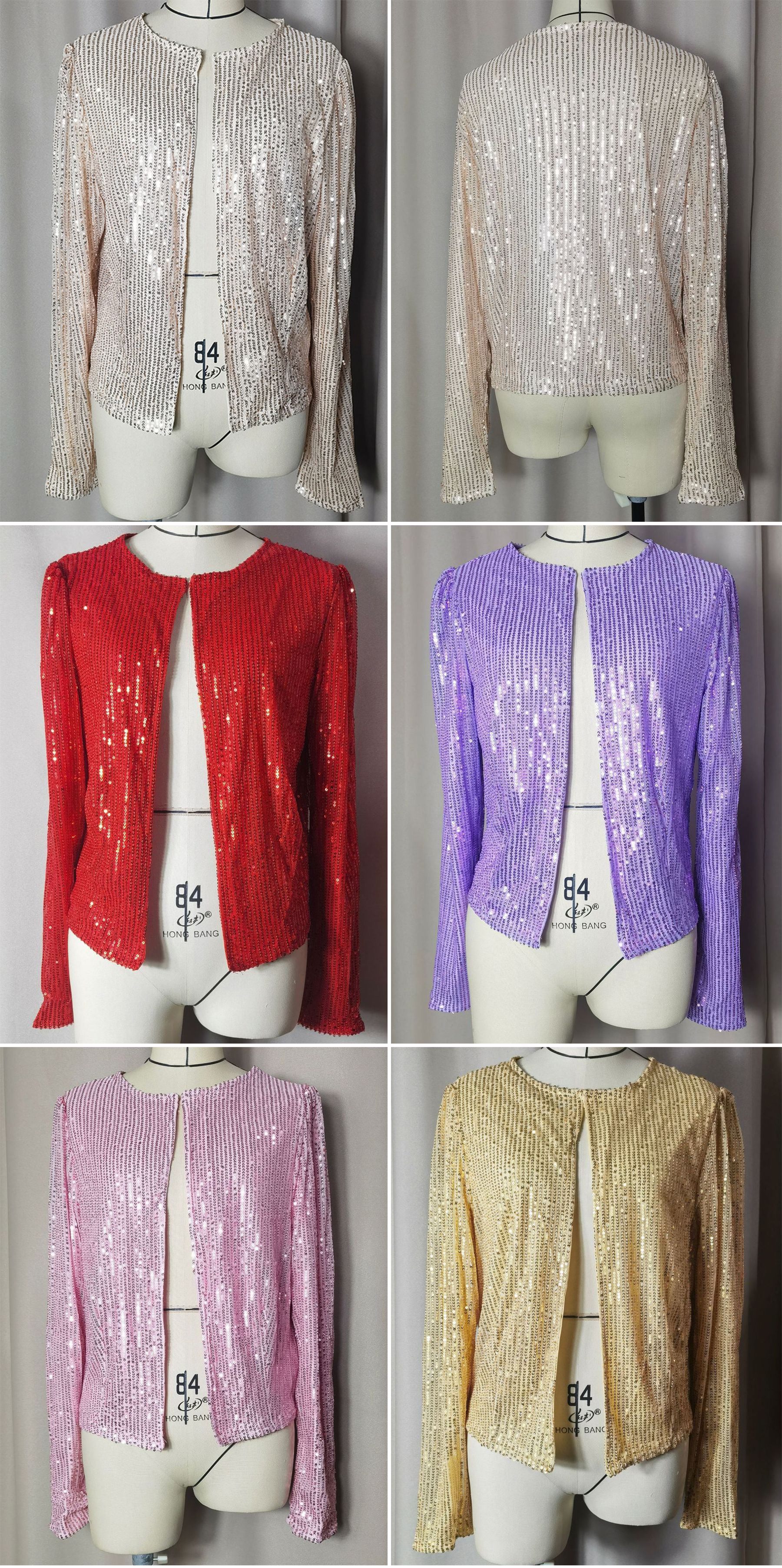 2025 Spring Burst Round Lead Long-Sleeved Sleeves Open-Colored Cardigan Casual Set Of Lightset Coat Woman HZ0108