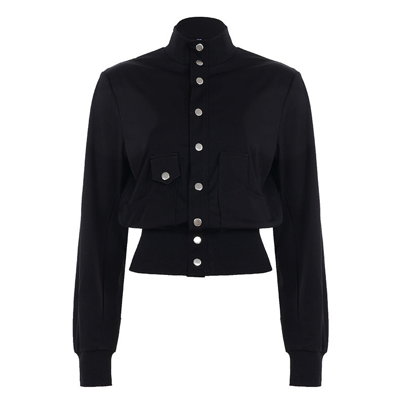 Autumn And Winter Solid Color Slimming Fashion Coat Women's Short-Term Waist Thin Black Collar Jacket HZ0107
