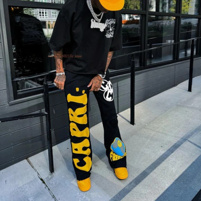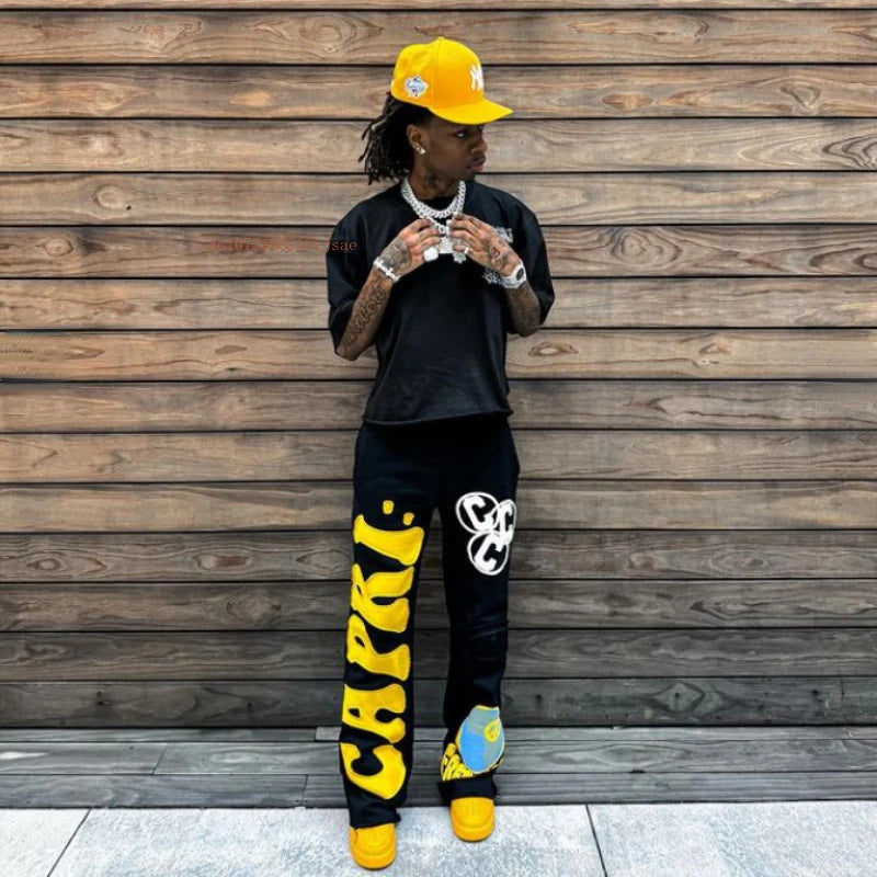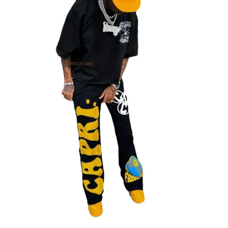 High Street National Tide Pants High Street In Tide Brand Men And Women Loose Print Trousers HZ0108