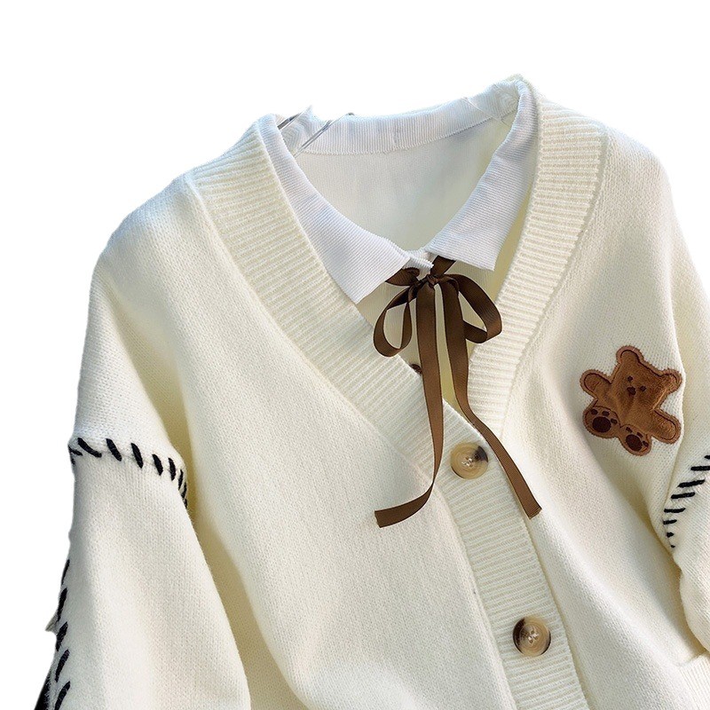 Korean Version Of The Bear Sweater Cardigan Women's Coat 2025 Autumn And Winter New Wear Rope Lazy Pocket Knitting Outside The Coat HZ0108