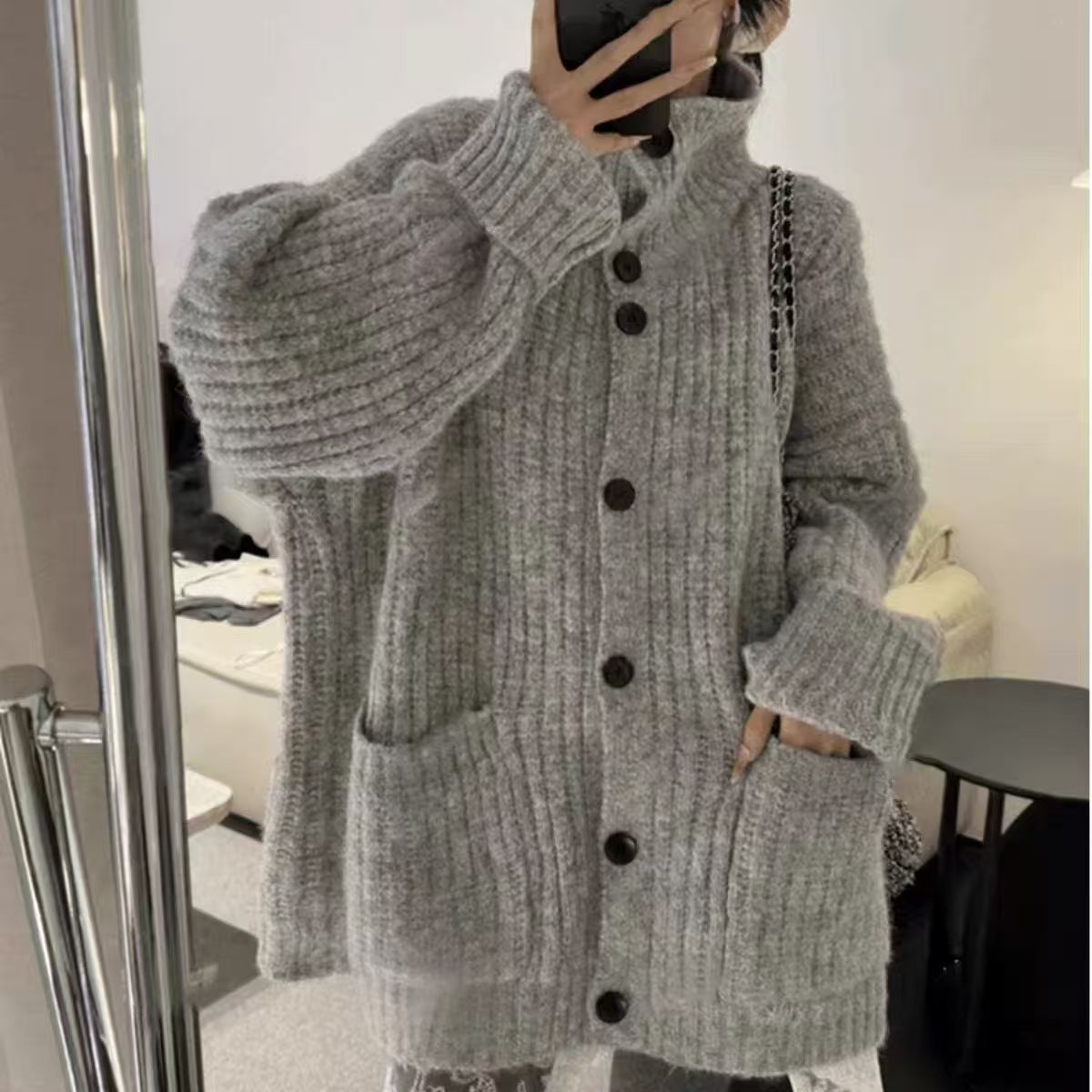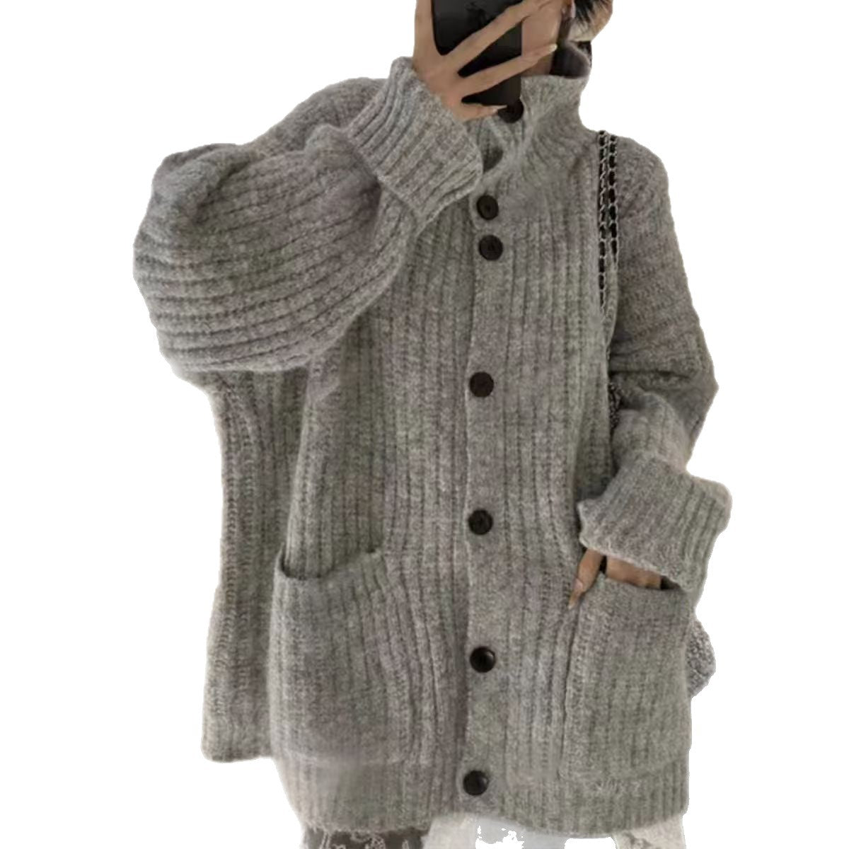 Korean Wearing A Lazy Wind Collar Sweater Autumn And Winter Women's High Sense Of Loose Soft Knitted Knitted Jacket Coat HZ0108