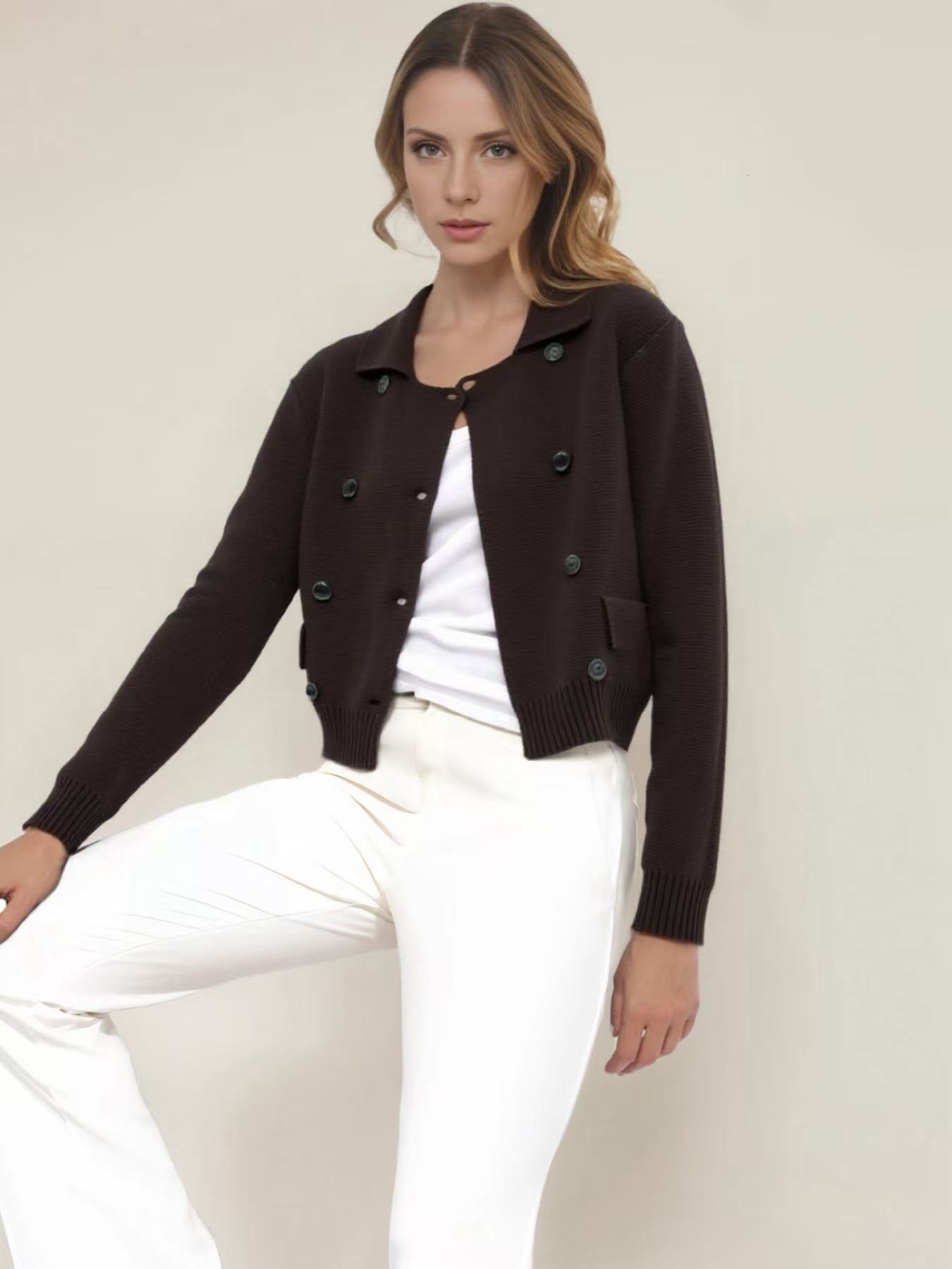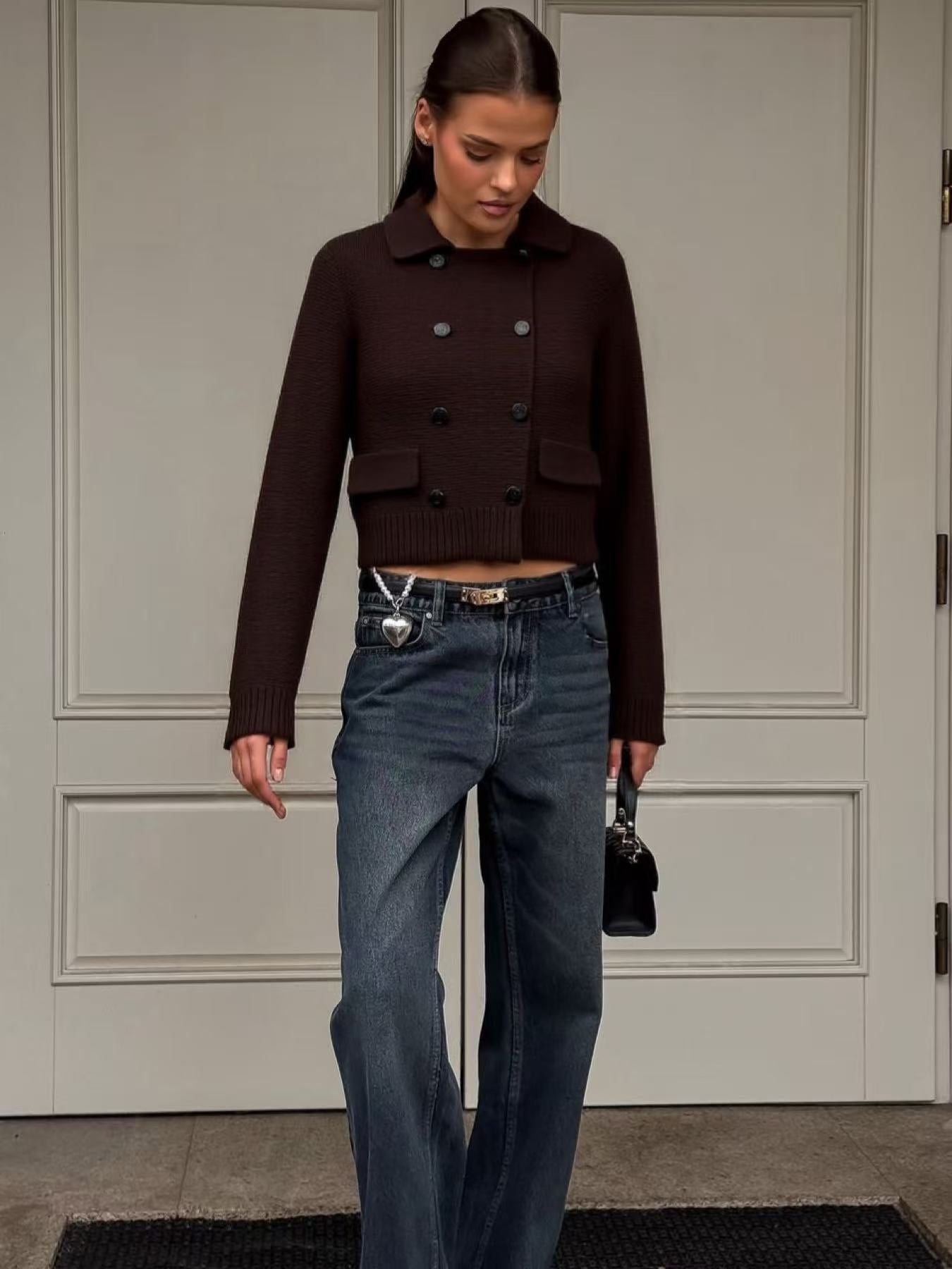 New Women's Fashion British Style In The Autumn And Winter Of 2025, Double Buckle Knitted Cardigan Coat Woman HZ0108