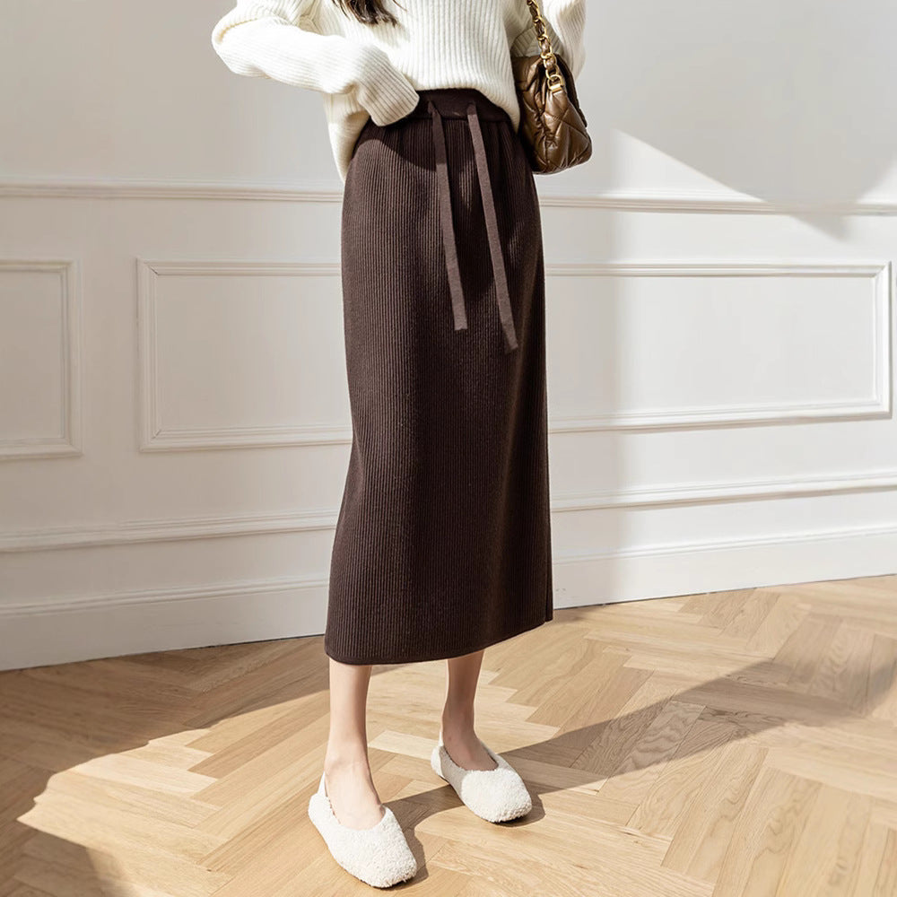 Pit Design Knitted Skirt Autumn Winter New High-Waisted Swaist Bag Hip Skirt Thin Casual Straight Skirt HZ0108