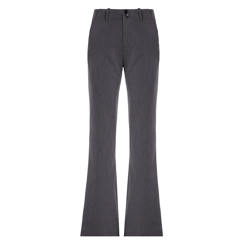 Relaxed Thin Leisurely Drag Floor Suit Trousers Winter Hottie Low-Waist Two Buckle Wide Leg Trousers HZ0107