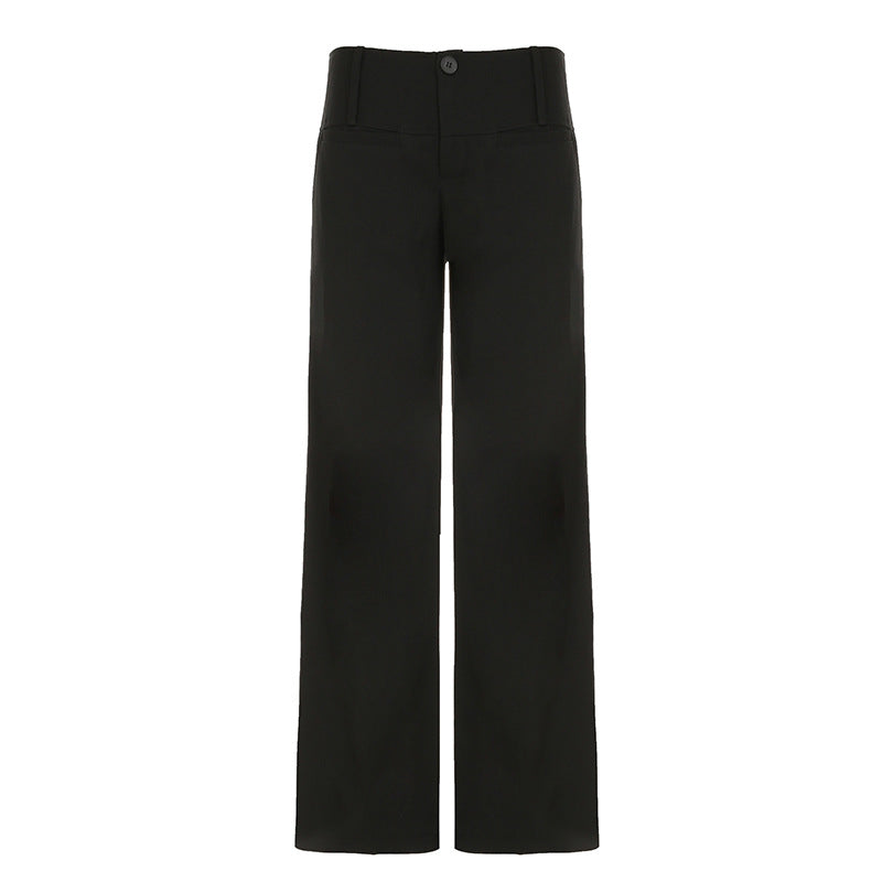 Solid Color Foundation Black Simple Style Low-Waist Suit Pants Women Loose Hanging Broad Leg Pants Slim Thin Casual Pants HZ0107