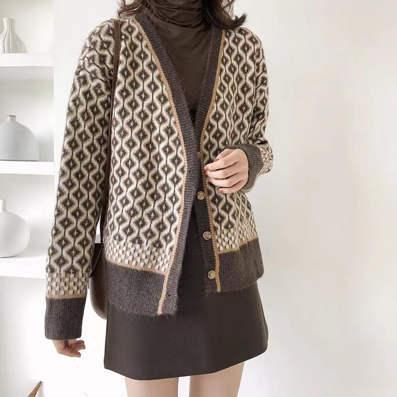 Spring 2025 Autumn And Winter Korean Version Of The Retro Temperament Knitted Cardigan V Collar Rivet Thick Loose Sweater Women's Coat HZ0108