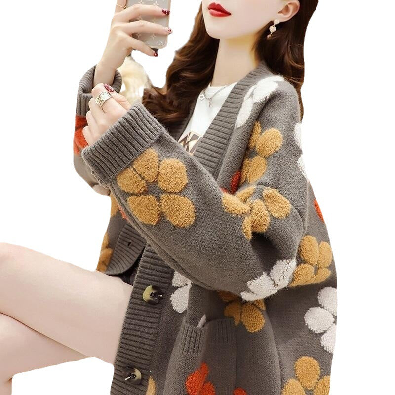 Spring And Autumn 2025 New Women's Sweater Cardigan Loose Long Outside Wearing Lazy Knitted Coat HZ0108