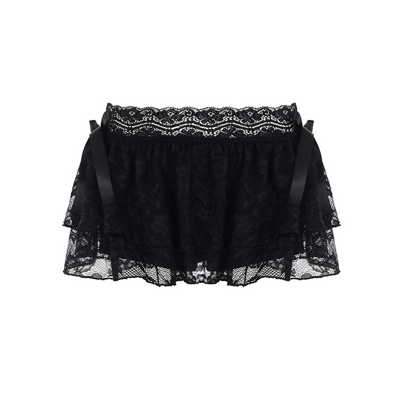 Sweet Girl Style Lace Spliced Cake Half-Dress New Bow Solid Color Base Skirt HZ0108