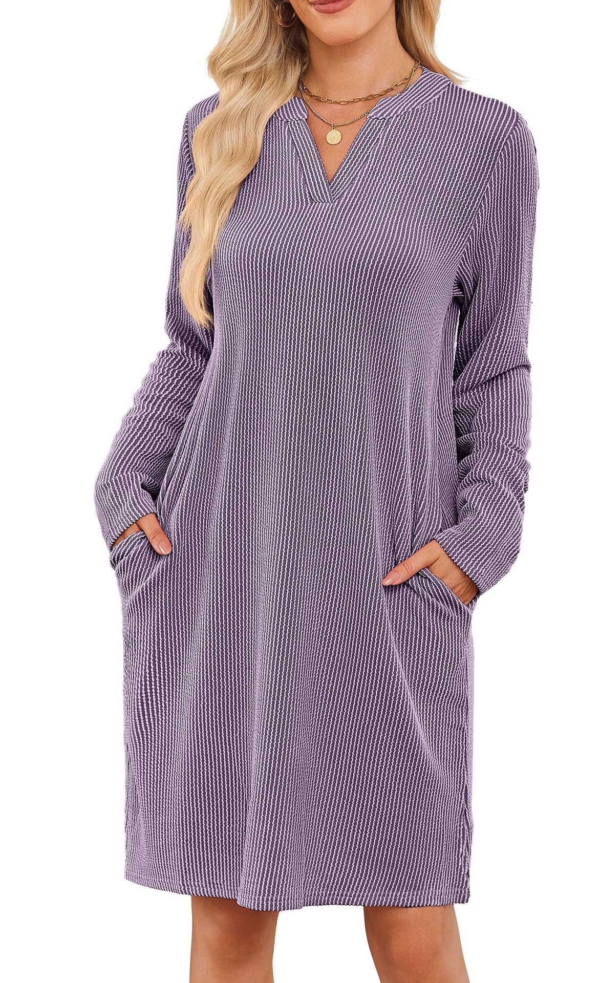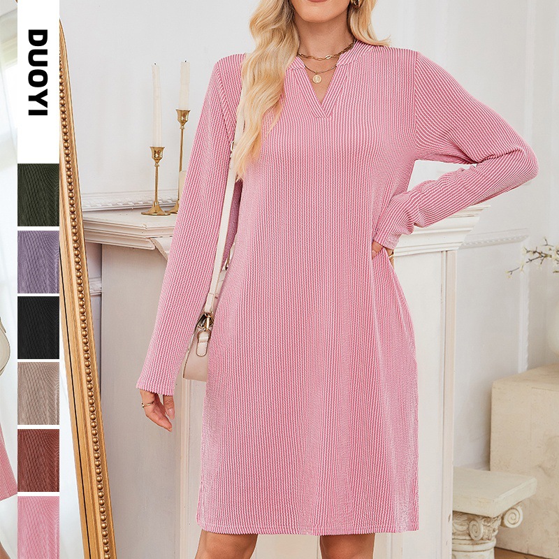 TK2025 Autumn And Winter New Loose V-Neck Pocket Leisure Long-Sleeved Home Dress HZ0108