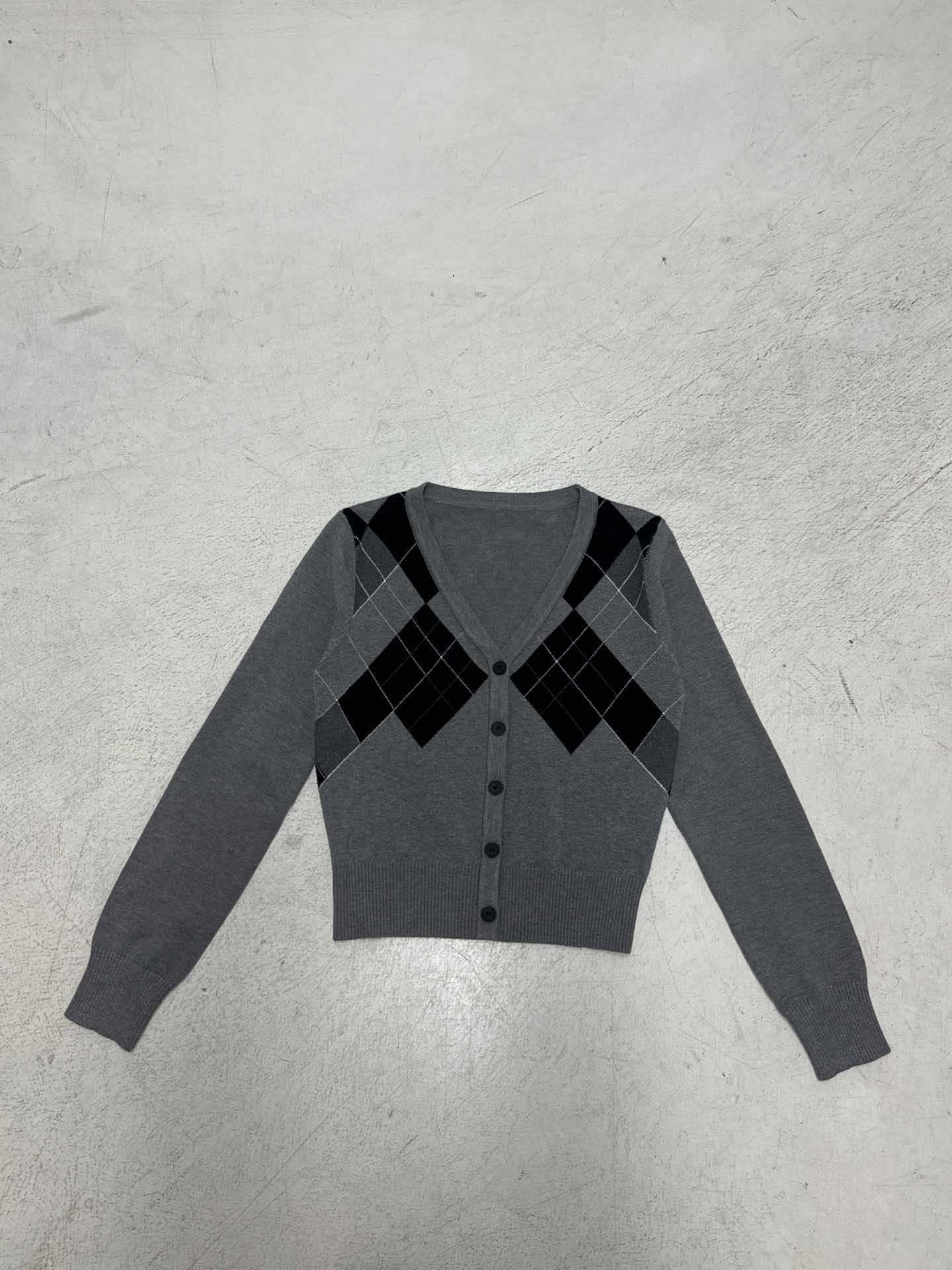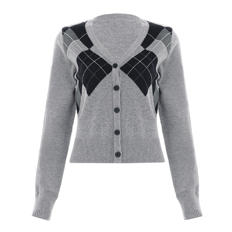 Vintage College Rally Rally Woven Cardigan Blouse Vintage Old-Sense Short V-Necked Hottie Sweater Woman HZ0107