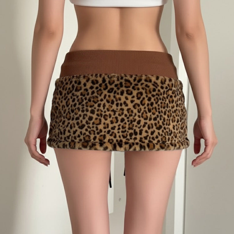 Y2K Babes Leopard Hair Spliced Bow Tie With Short Skirt Autumn Winter Fashion Low-Rise Half Skirt Female Trend HZ0107